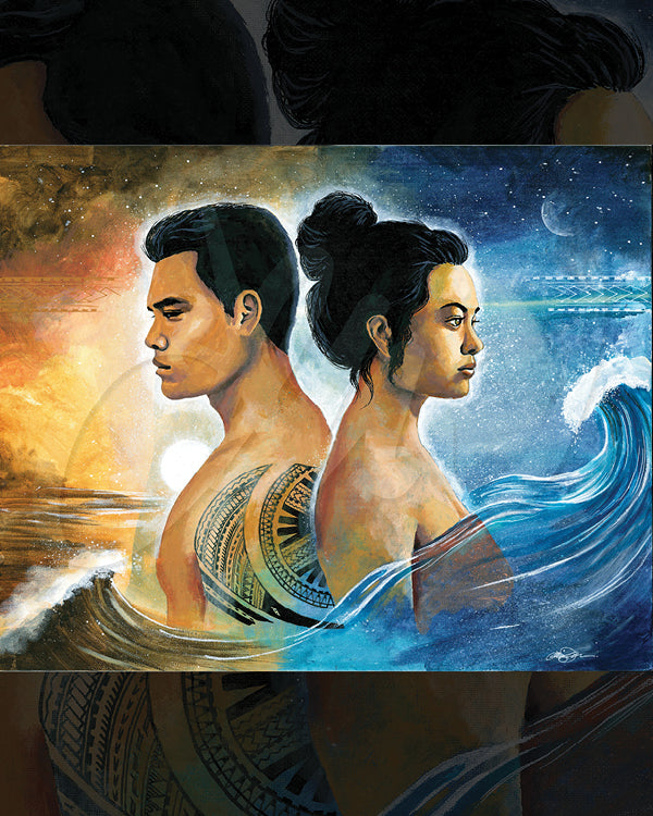 Feagaiga is an original 16" x 20" acrylic painting on canvas board by Samoan artist Tanya Masaniai. Rooted in cultural reverence, this piece embodies the sacred covenant of feagaiga—the deeply honored bond between siblings, generations, and communities within Samoan culture.