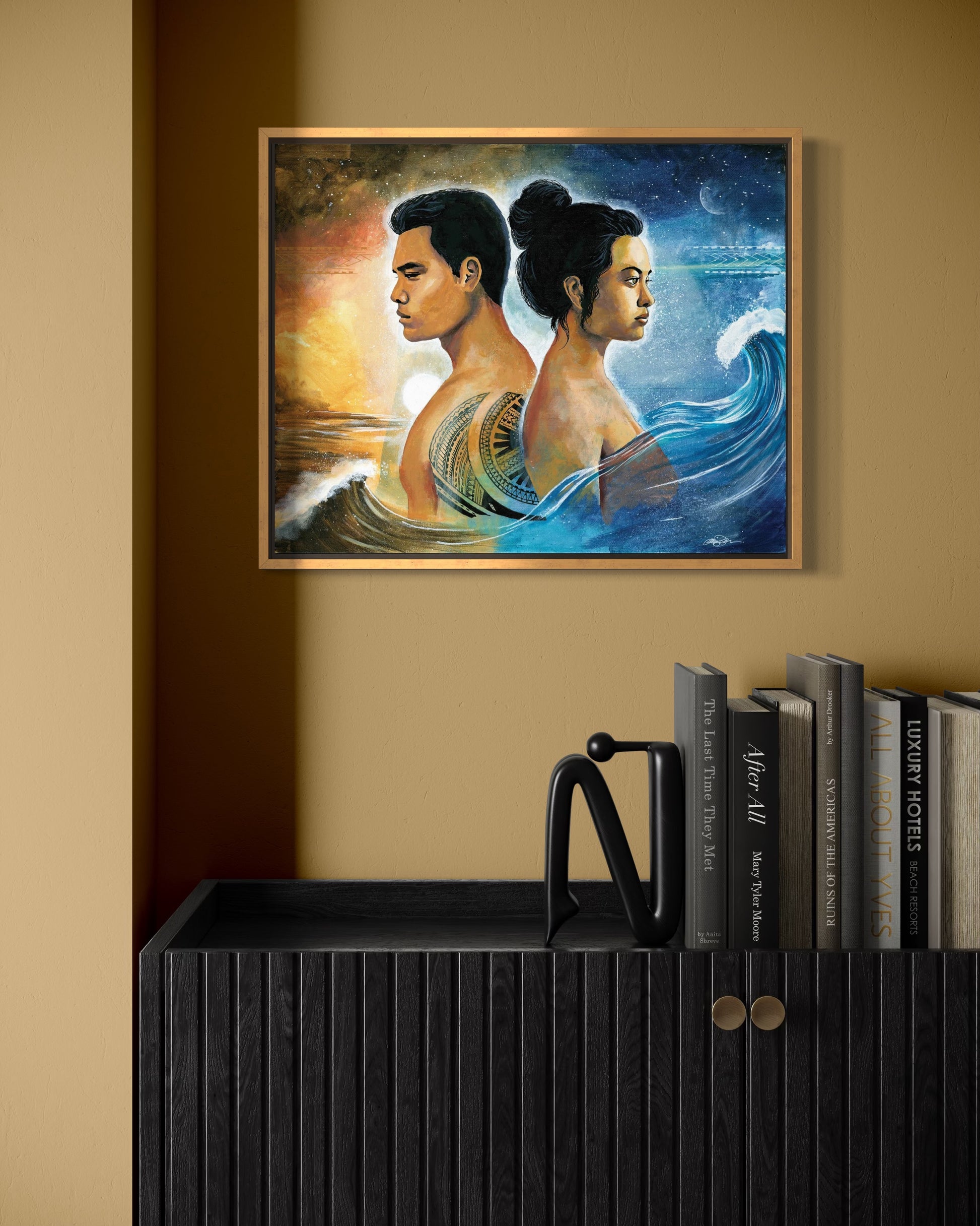 The term feagaiga refers not just to a relationship, but to a spiritual agreement—most commonly the revered bond between a brother and sister, where protection, respect, and sacred space (vā) are upheld. This painting interprets that relationship in a modern context: a visual offering that honors not only familial duty, but the ancestral wisdom and quiet power exchanged between loved ones.